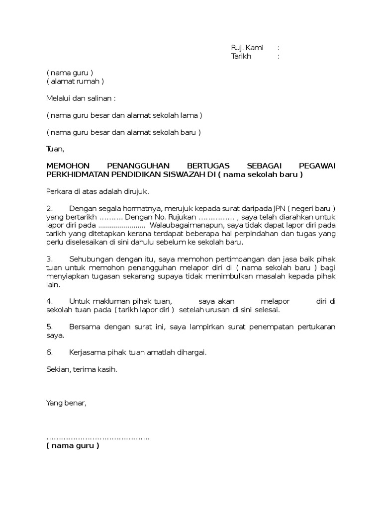 The Basil Satryo Contoh Surat Penangguhan Bertugas Ditempat Baru Surat Rasmi Rayuan Masuk Sekolah Terengganu N 8 4 Alamat Penuh Tempat Bertugas
